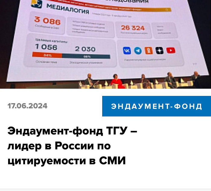 Эндаумент-фонд ТГУ – лидер в России по цитируемости в СМИ